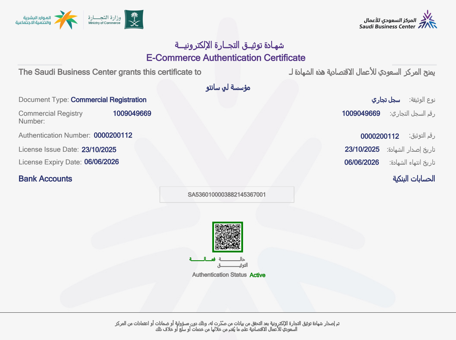 شهادة توثيق التجارة الإكترونية لدى المركز السعودي للأعمال